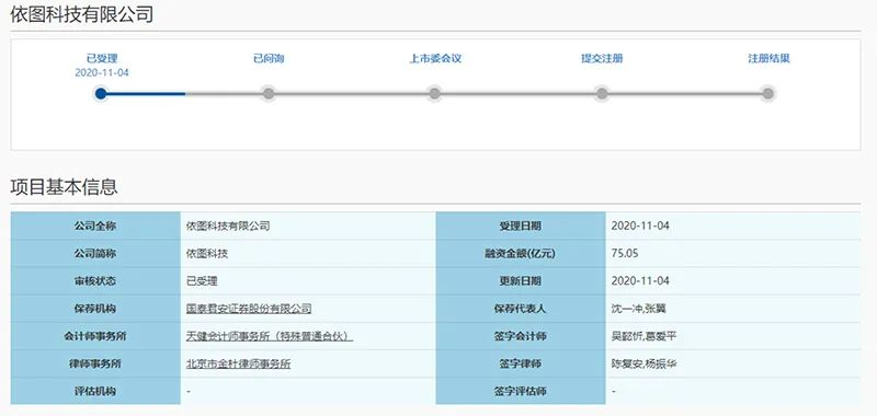 11月4日晚间,上交所官网显示,依图科技首次公开发行存托凭证并在科创板上市申请获受理。