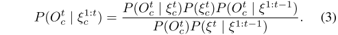 利用贝叶斯法则和马尔可夫假设,上式可写为: