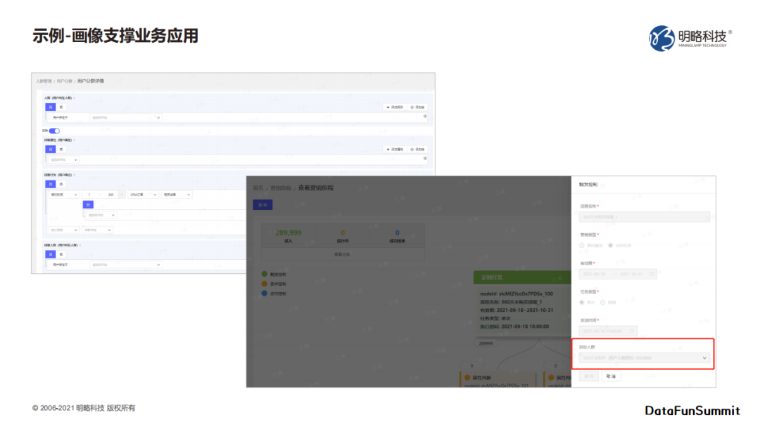 接下来,结合明略的用户画像和营销自动化产品,来给大家举一个画像支撑业务应用的例子,非常浅显易懂。