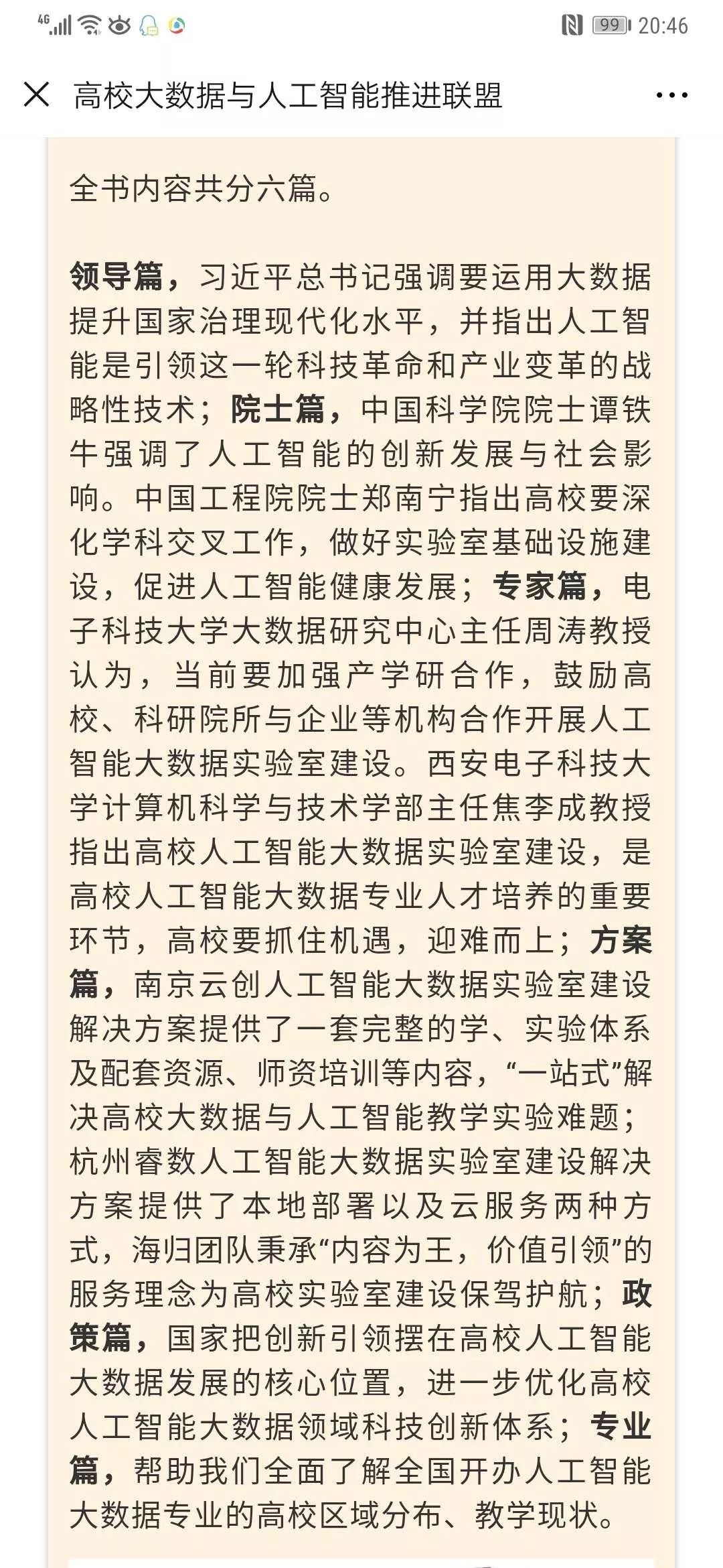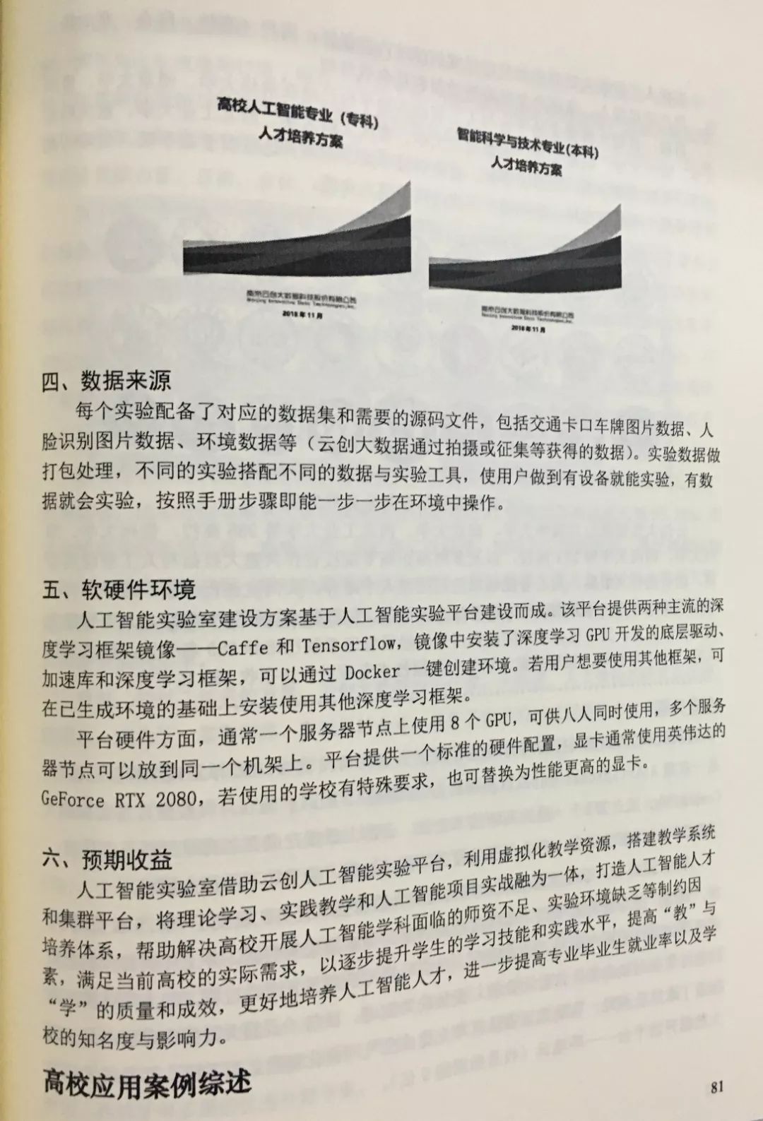 《选型采购指南》是迄今为止,我国聚焦人工智能大数据实验室建设内容的应用指南和案头工具书,该书全面展示了企业在高校人工智能大数据实验室建设领域的核心技术能力和服务水平,对指导高校人工智能大数据实验室建设规划、提高效率,降低成本、解决实验室建设方案选型难、选型贵、选型背靠背等难点、疑点问题,具有重要的参考价值。
