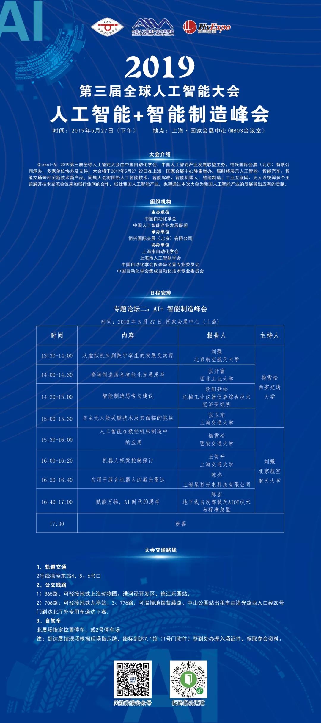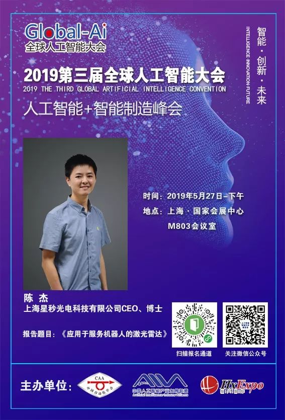 Global-Ai 2019第三届全球人工智能大会由中国自动化学会、中国人工智能产业发展联盟主办,恒兴国际会展(北京)有限公司承办,多家单位协办及支持,大会将于2019年5月27-29日在上海·国家会展中心隆重举办,届时将展示人工智能、智能汽车、智能交通等相关新技术新产品,同期大会将围绕人工智能技术、智能驾驶、智能机器人、智能制造、工业互联网、无人系统等多个主题展开技术交流会议来加强行业间的合作,强壮我国人工智能产业,也望通过本次大会为我国人工智能产业的发展做出应有的贡献。