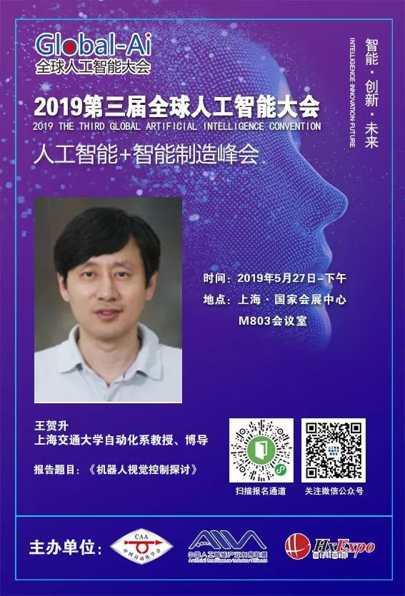 报告人简介:王贺升,博士,现任职上海交通大学自动化系教授,博导。国家优秀青年基金获得者。近年来,在国内外刊物和会议发表SCI/EI索引论文100多篇,已获国家发明专利授权20多项。2014年获得上海市青年科技启明星A类。作为项目负责人,主持包括国家自然科学基金联合基金重点项目等多个项目。曾担任2014国际机器人及仿生学大会(IEEE ROBIO2014)的大会程序主席(Program Chair), 2016年国际实时计算与机器人大会(IEEE RCAR2016)的大会总主席(General Chair), 将担任2019年国际先进智能机电系统(IEEE AIM2019)的大会程序主席。目前担任国际期刊IEEE Transactions on Robotics,Assembly Automation,International Journal of Humanoid Robotics的副编辑(Associate Editor),IEEE机器人及自动化学会技术委员会委员。研究领域:视觉伺服,手术机器人,机器人控制,计算机视觉。现为IEEE高级会员。