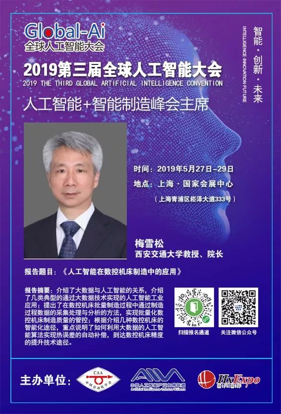报告人简介:梅雪松,教育部长江特聘教授,教育部创新团队负责人,国家重点研发计划项目首席科学家。于1991年6月在西安交通大学研究生毕业,获博士学位,之后留校任教至今。现任西安交通大学机器人创新研究院院长,陕西省智能机器人重点实验室主任,西安交通大学学术委员会副主任,中国自动化学会制造系统控制专业委员会主任委员,中国机械工程学会机器人分会副主任委员等学术职务;兼任“智能制造和机器人”国家科技创新2030重大项目专家组专家,网络化协调制造和智能工厂”国家重点研发计划专家组专家。