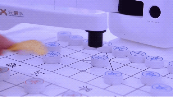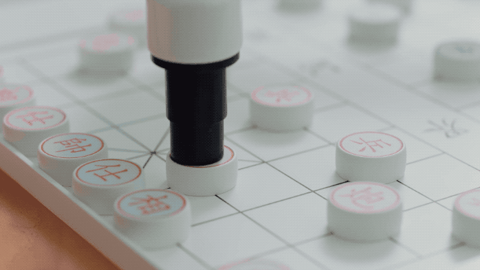 元萝卜搭配了一只毫米级抓取精度的机械臂,利用磁吸的方式,可以快速识别棋子,并将它们摆放到正确的位置。