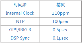 BlackBox G5DFR的同步算法能在不同的时间源中自动选出最佳时间源(基于精度),主时间源作为主/外部时间同步源,而替代时间源在主时间源同步失败时作为第二时间源。下表概述了BlackBox G5DFR各个时间源的同步精度: