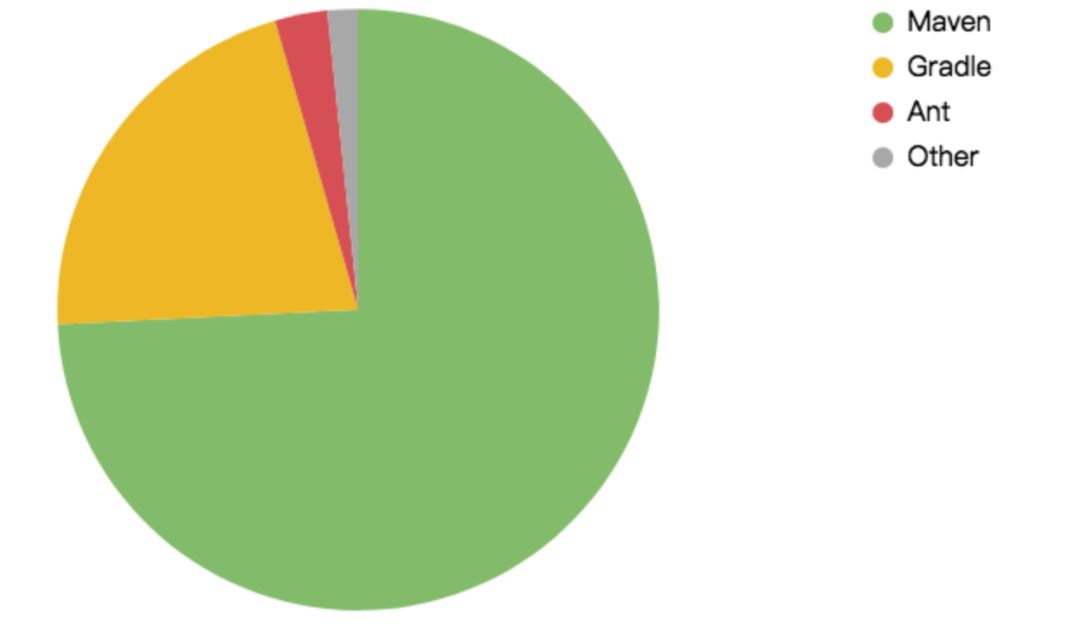 至于 Gradle,它占据了市场的一小部分,主要来自 Ant 规模的缩小,现在只占市场的 1/5 ,即 21.3%。