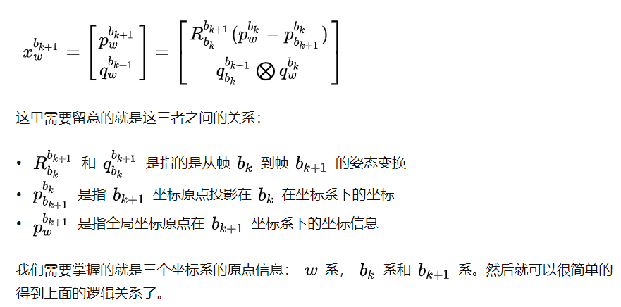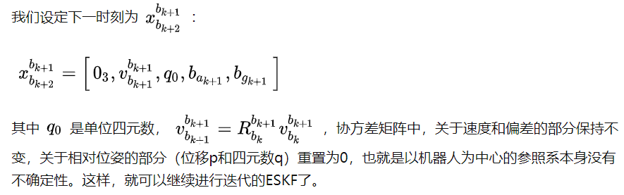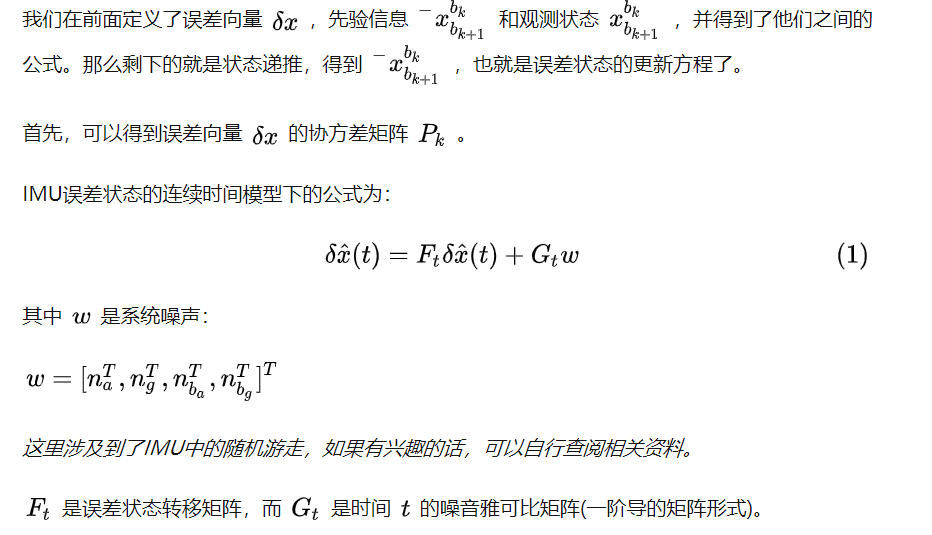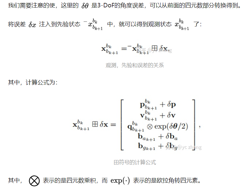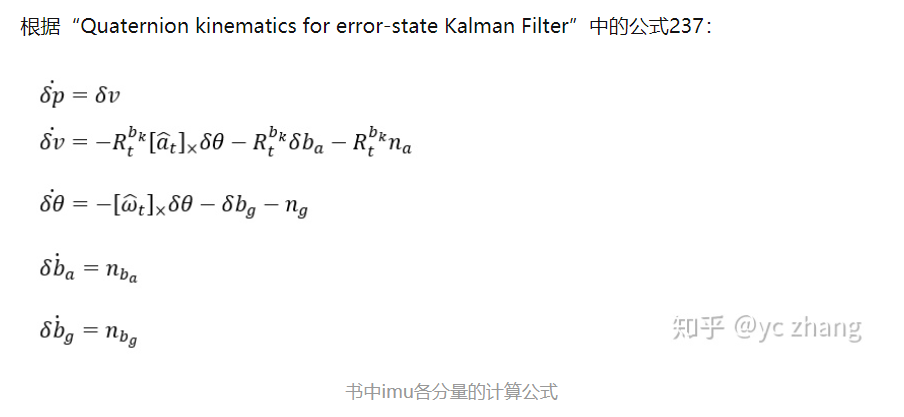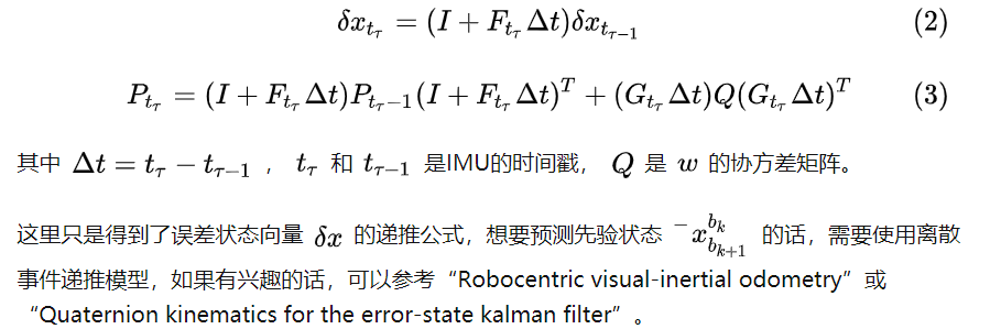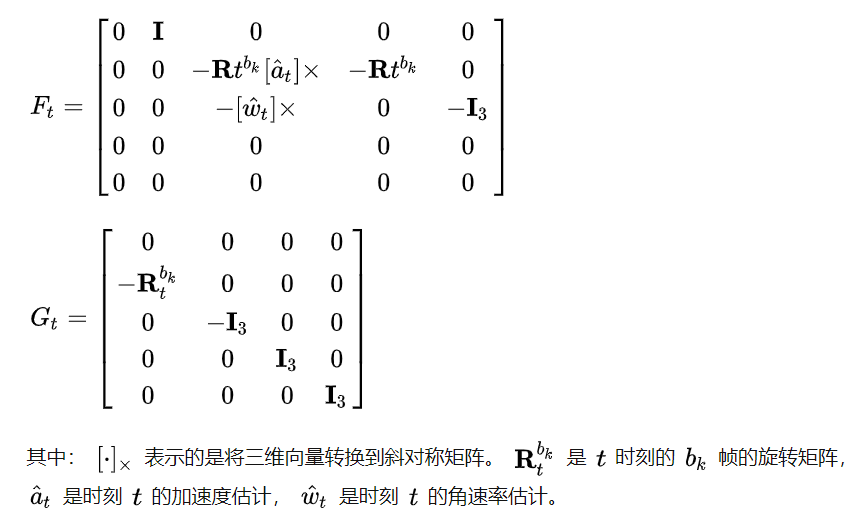 这里和VIO中表示使用误差向量中的局部重力不同。我们使用估计的roll和pitch,将重力从世界帧转换到局部帧,来获取重力信息。