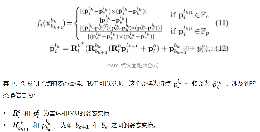 这里其实就是LOAM的点线距离和点面距离的公式了: