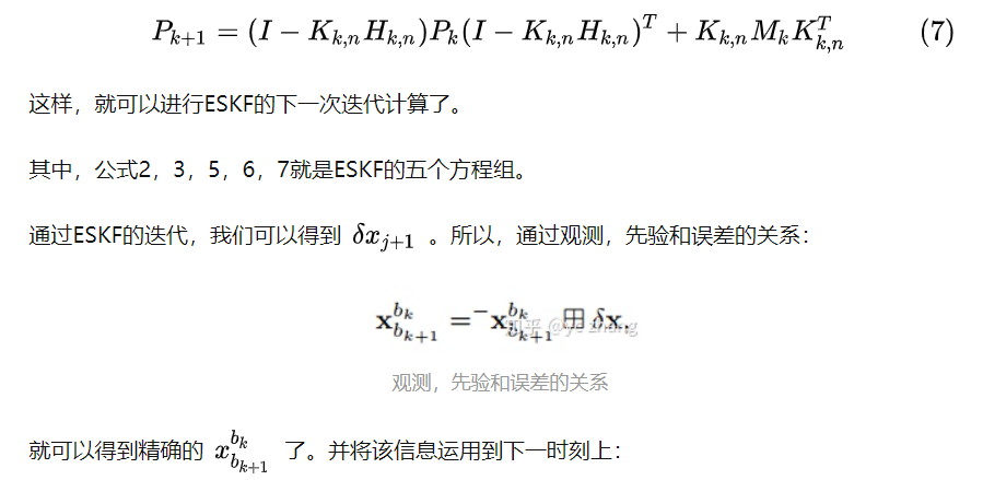 其中,ESKF的卡尔曼增益方程和状态更新方程: