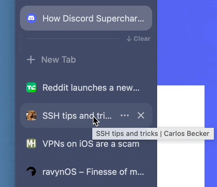 除了层级设计外,Arc 还微调了很多常见操作的响应方式,潜移默化地引导你保持标签栏的干净清爽