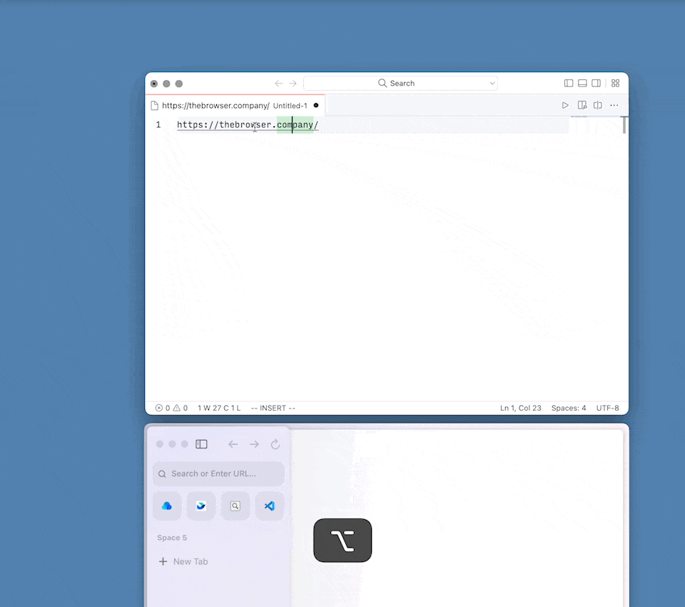 在 Arc 中,标签的容器变成了工作区,而窗口则被解放出来,成了一种类似观测镜的东西:两个窗口可以显示不同工作区中的标签、同一工作区的不同标签,甚至同一工作区的同一标签;关闭窗口则不会导致任何标签被关闭。这就打消了导致不愿关闭窗口的主要顾虑。(如果你是 Vim 用户,看到这里或许会有点熟悉感——是的,很像是