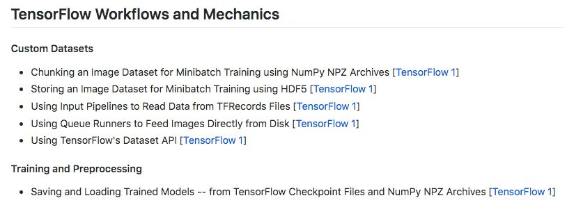 该项目的最后介绍了 PyTorch 和 TensorFlow 的工作流和机制,涉及数据集、训练和预处理等内容。