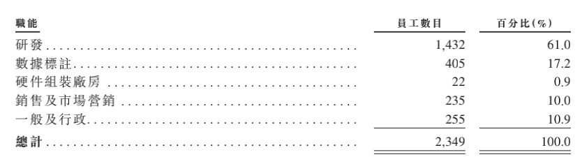 在员工方面,2016年,旷视员工数目为264名,2017年665名,2018年1965名。截止到2019年上半年,旷视员工2349名,其中研发人员1432名,占比61%,相应福利开支3.09亿,占整体研发支出的66%。