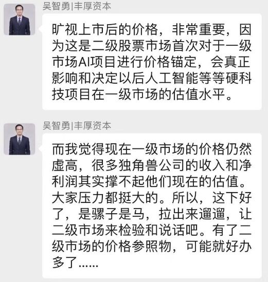 旷视上市后的价格,非常重要,因为这是二级股票市场首次对于一级市场AI项目进行价格锚定,会真正影响和决定以后人工智能等硬科技项目在一级市场的估值水平。