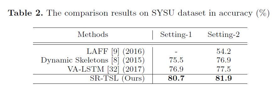 在SYSU 3D Human-Object Interaction dataset 上的实验结果: