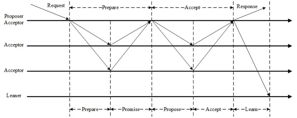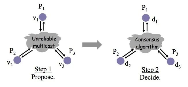 为了就某个值达成一致,每个进程都可以提出自己的提议,最终通过分布式一致性算法,所有正确运行的进程学习到相同的值。