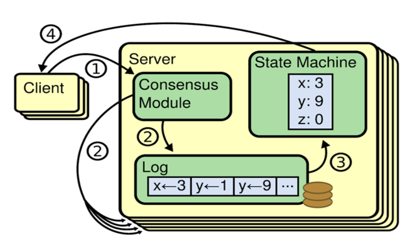 工业界对分布式一致性的应用,都是为了构建多副本状态机模型(Replicated State Machine),实现高可用和强一致。