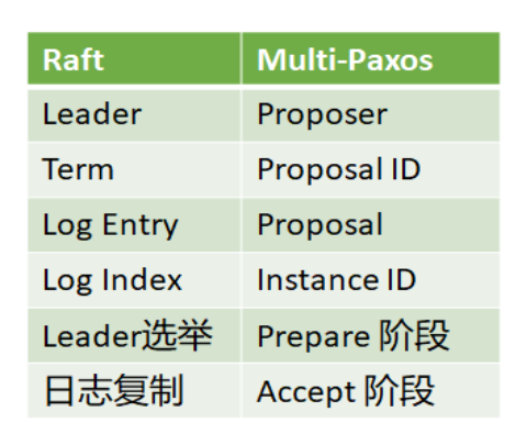 Raft与Multi-Paxos有着千丝万缕的关系,下面总结了Raft与Multi-Paxos的异同。