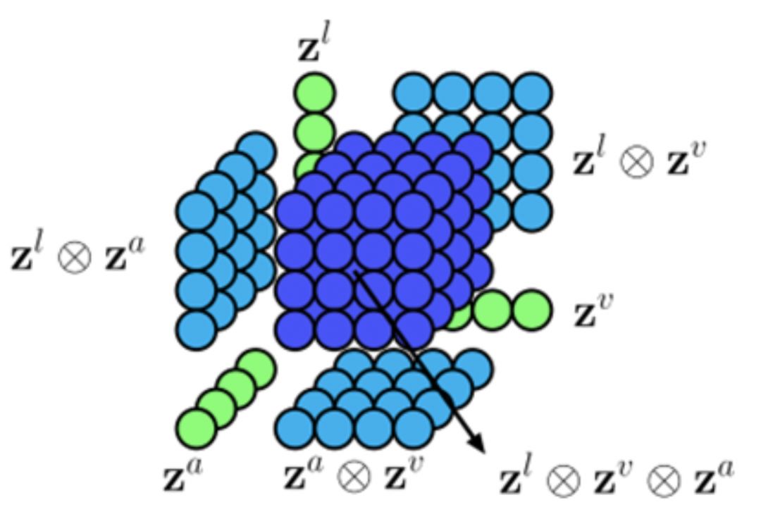 Zadeh和他的团队[4]提出了一种基于张量外积(Outer product)的多模态融合方法,这也是TFN名字的来源。在编码阶段,TFN使用一个LSTM+2层全连接层的网络对文本模态的输入进行编码,分别使用一个3层的DNN网络对语音和视频模态的输入进行编码。在模态融合阶段,对三个模态编码后的输出向量作外积,得到包含单模态信息、双模态和三模态的融合信息的多模态表示向量,用于下一步的决策操作。