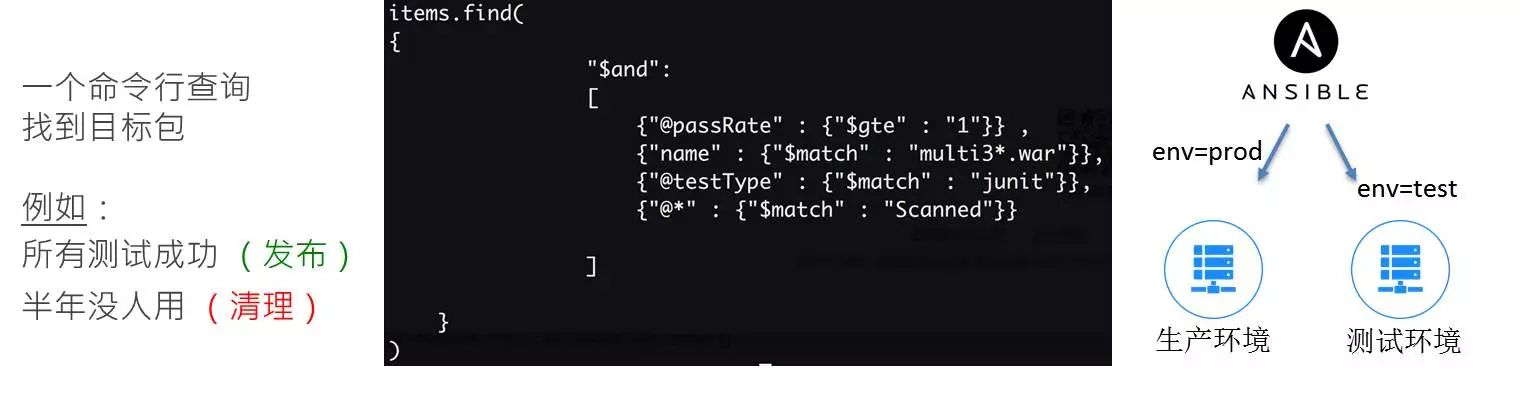 最后,你需要一个智能的查询能力,去找到公司内部的好几万个包,像思科、华为都有几十亿个包,不是最新的版本,而是经过测试且单元测试通过率为 100%、漏洞扫描已经通过的包,可以自动地将它部署到生产环境。像思科、甲骨文他们会做一些自动的清理,比如说有一个包在半年之内没有被下载,它会自动去做删除。所以如果你们存储的成本越来越高,也肯定要评估怎么做自动化清理。同样是做一个环节再做下一个环节,所以可以用 AQL 这样一个工具去做,很多大企业也是这么实现的。