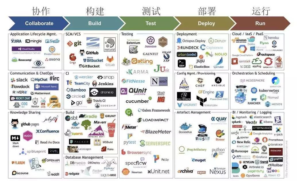 最后部署和评估,很多公司在评估他们的 DevOps 数据,这个月和上个月底相比,发布到底有没有变得更加高效,我的测试突破率有没有比之前快。上图中提到的是我们评估用得最多的一些工具,当然每个阶段还有更多别的工具。