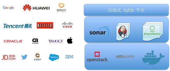 这个架构也是用 Jenkins、Maven、JUnit、Sonar、Docker 容器等工具来做的平台,这是一个免费开源的平台,可以快速实现企业内部的一站式持续交付平台。