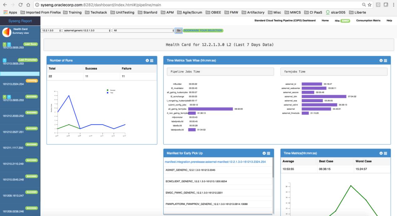 甲骨文自己内部做了一个持续交付平台,是封装的 JFrog、Jenkins,这个团队最开始是只有中间件一个小团队,他们也是遇到其它公司普遍遇到的问题——怎么说服领导。他们是先有一个小团队,进而做这种实施的评估,看这个团队的效率有没有什么变化,比如说上线的速度有没有变得快、测试通过率有没有变化,然后在公司内部出了一个报告,显示中间件团队用了 DevOps 平台上之后效率的情况如何。