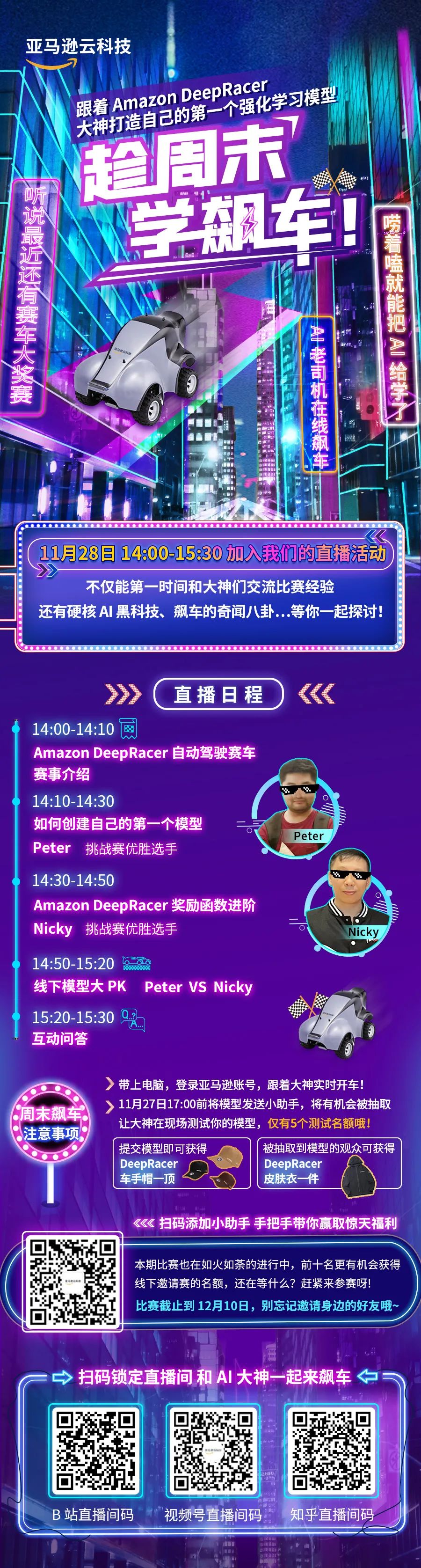 还不熟悉Amazon DeepRacer?本周日下午直播,教你飙车!