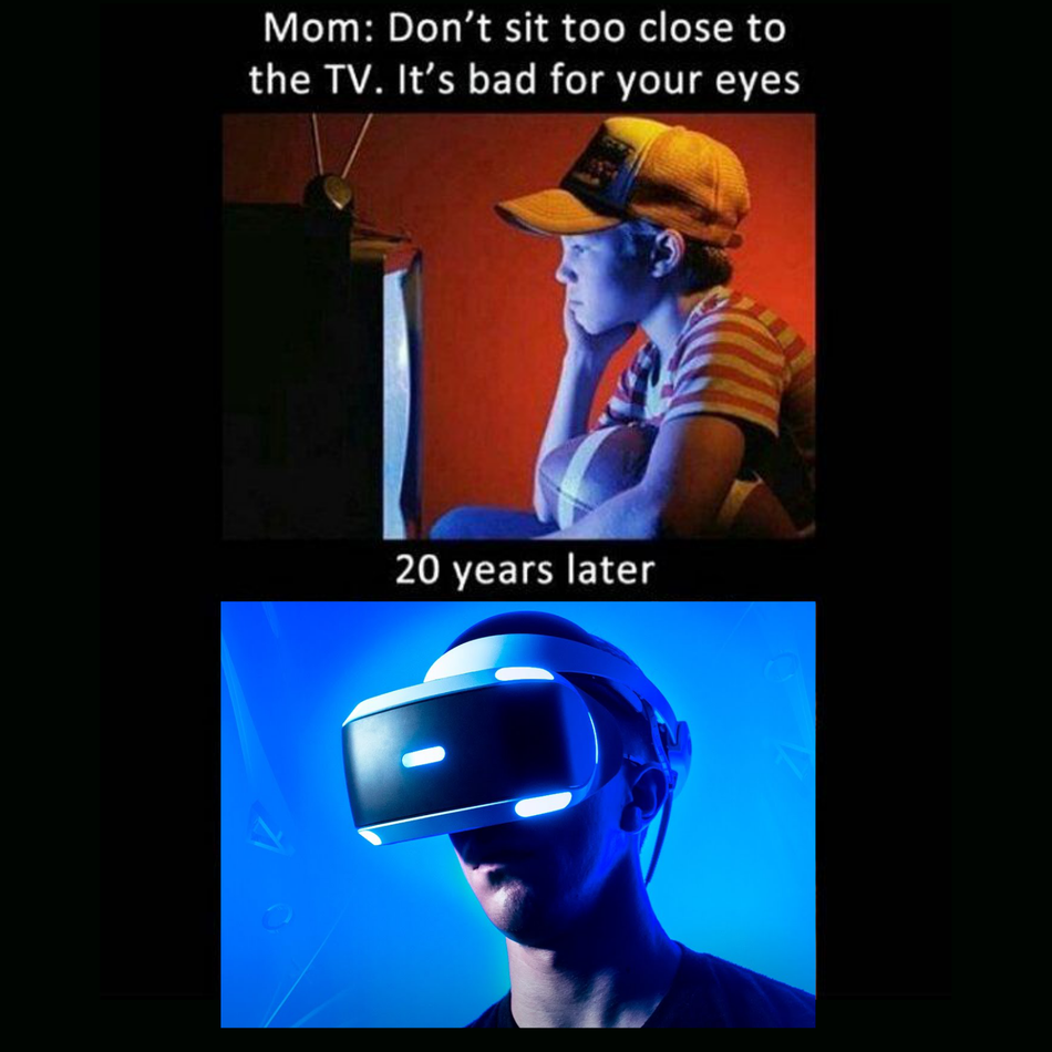 「你知道,当我长大的时候,总是说『不要离电视太近,对视力不好』,而现在电视就直接放在眼眼睛跟前了,字面上的意思。嗯……这对你有好处吗?」