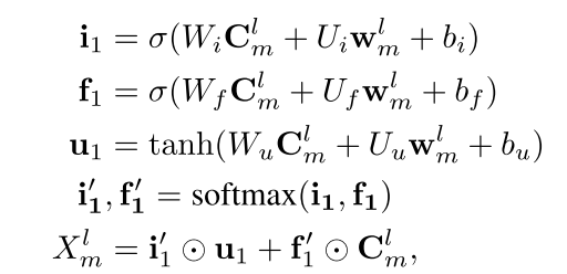 在本文中,将CNN的顶层特征 作为高层特征,通过向每一层CNN添加一个feedback layer来调整lexicon的权值,具体计算如下:
