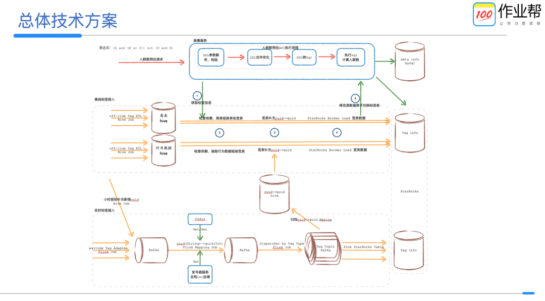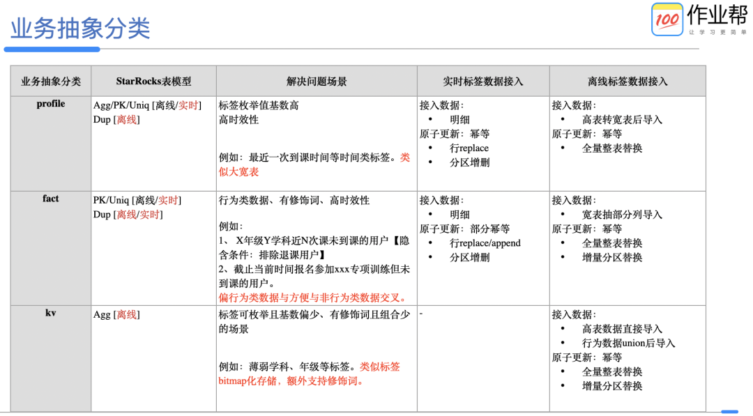 作业帮为提高孩子学习效率通过搜索、答题、咨询等各种行为数据以及辅导效果等结果数据,利用算法、规则等技术手段建立用户画像,用于差异化辅导提升学习效率。我们根据画像标签特点并结合 StarRocks 能力建设了一套相对适合全场景的画像圈人系统。本文主要介绍此画像服务、标签接入的系统设计及圈人性能优化方式。