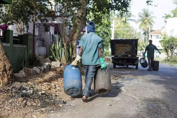 在迈索尔,每当清晨的哨声响起时,社区居民会拿着两个塑料桶(分别盛装可堆肥和不可堆肥垃圾)走出家门,由清洁工人将垃圾投放到大约400辆手推车和170辆自卸式清运车里,这些车辆随后会将垃圾运送到九个回收中心和一座堆肥厂。在回收中心,垃圾被分离开来,瓶子、金属、鞋类和塑料杯等可回收利用的物品被卖给废品回收商。其余的进行堆肥处理,再卖给农民。
