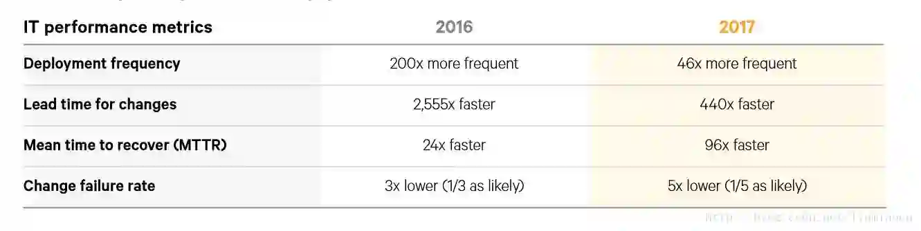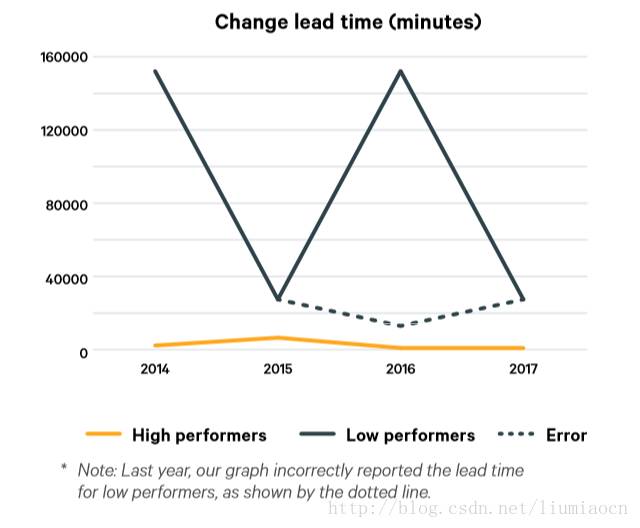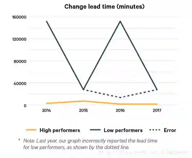 高绩效者今年与去年持平,而低绩效者大幅度提升,Lead Time的差距收窄到440倍。