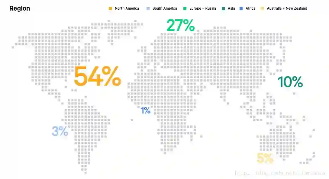 采样的地域多数取于北美和欧洲,二者之和超过80%。