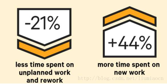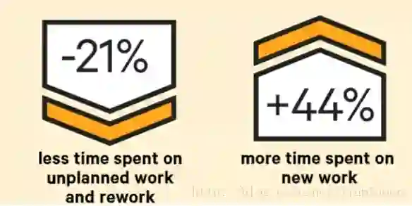 在去年的介绍中,发现高绩效者仅仅在重复作业和计划外作业就比低绩效者少花22%的时间,而他们能在新的特性开发等新的作业上多花29%的时间,而今年这个趋势和结果已然存在,而且新的作业上能够投入的时间的优势进一步加深,这两个数据分别变成了21%和44%。