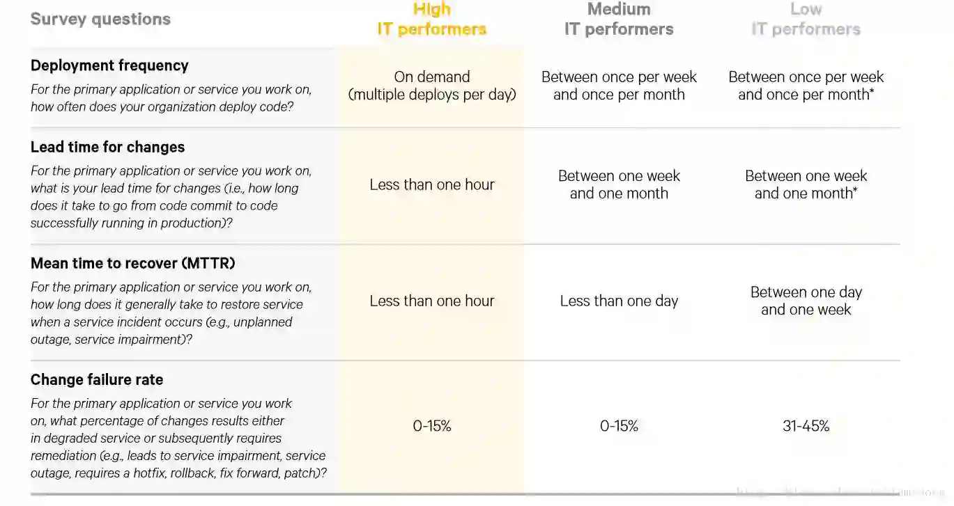 吞吐量指标:代码提交到部署的交付时间:440倍优于低效者