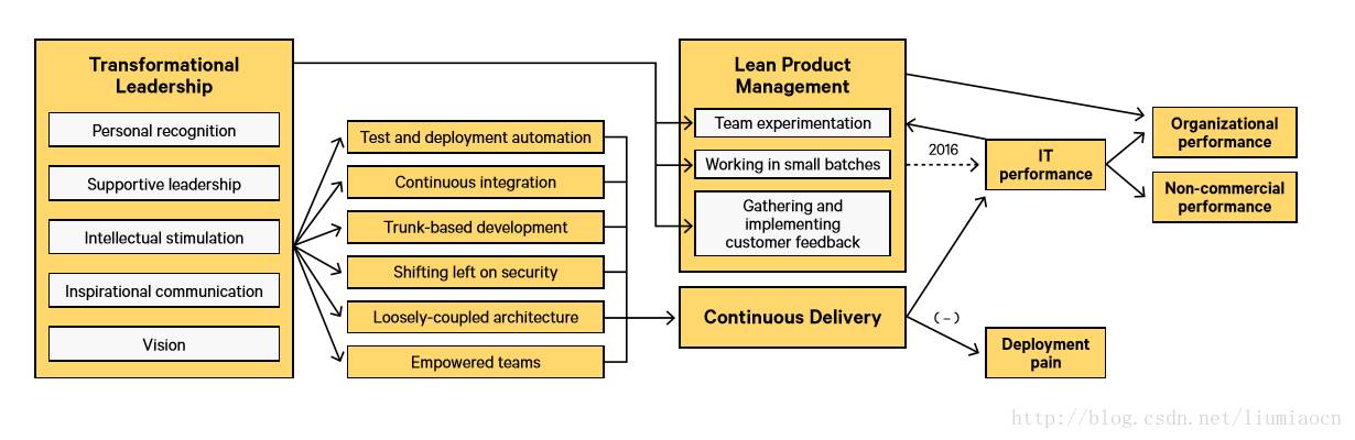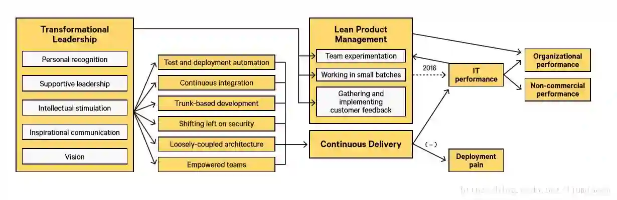 而今年令人兴奋的一项研究则是聚焦在调查那些帮助驱动高效能的领导力的特性。而这一点是在DevOps中一致被我们所忽视的话题之一,虽然变革型领导力在很多地方都已经体现出其非常重要比如:
