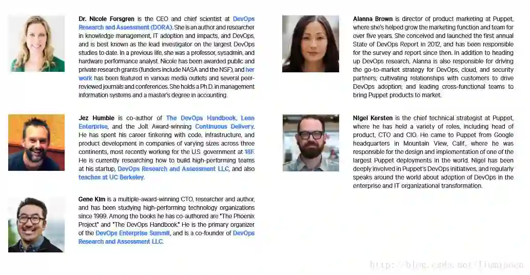 Jez Humble和Gene Kim位列其中,为这份报告的权威加上了足够的注解。而Dora也正是由这二位和 Dr. Nicole Forsgren共同创立的。