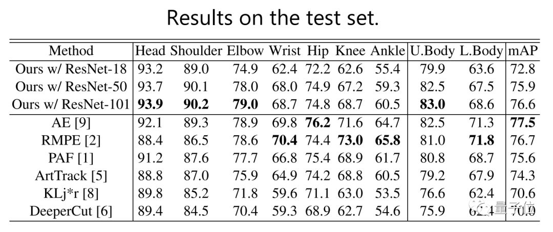 来看下具体数据,在头、肩、肘部位和整体上半身识别中超过了其他方法,整体得分也不虚。