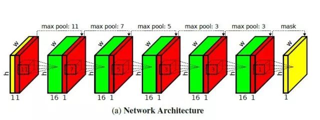 上图为作者所提出的神经网络的结构。最左侧的黄色的是输入层(稀疏的深度数据),红色是二进制的mask,用来表示所对应的位置是否为有效的数据。中间是几层稀疏卷积层,中间执行最大池化策略时,其核逐渐由11*11,变为3*3。