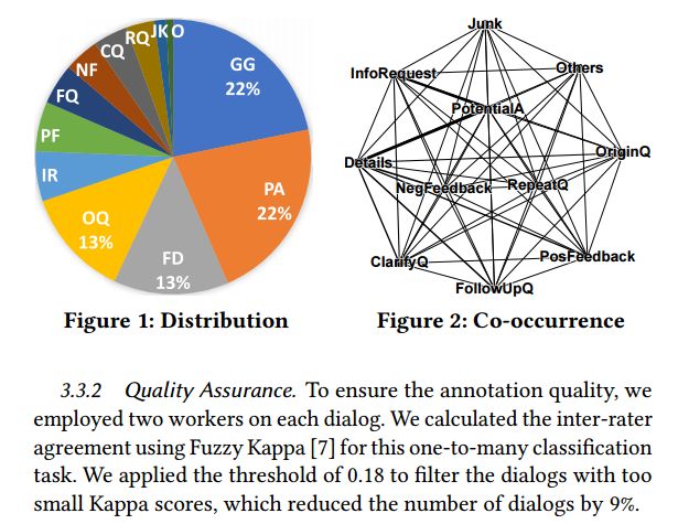 摘要:Understanding and characterizing how people interact in information-seeking conversations is crucial in developing conversational search systems. In this paper, we introduce a new dataset designed for this purpose and use it to analyze information-seeking conversations by user intent distribution, co-occurrence, and flow patterns. The MSDialog dataset is a labeled dialog dataset of question answering (QA) interactions between information seekers and providers from an online forum on Microsoft products. The dataset contains more than 2,000 multi-turn QA dialogs with 10,000 utterances that are annotated with user intent on the utterance level. Annotations were done using crowdsourcing. With MSDialog, we find some highly recurring patterns in user intent during an information-seeking process. They could be useful for designing conversational search systems. We will make our dataset freely available to encourage exploration of information-seeking conversation models.
