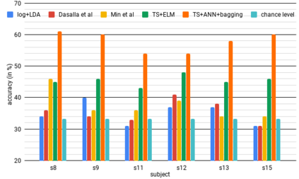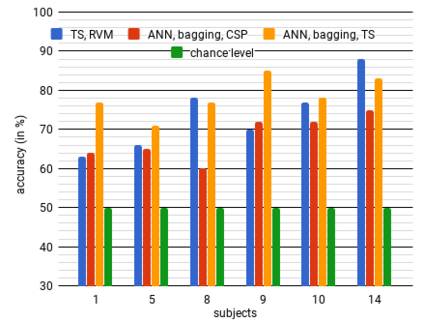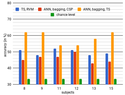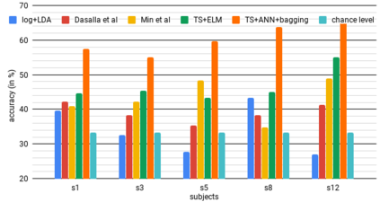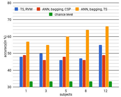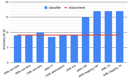 翻译:这项工作探索了解码模拟语音(IS)信号的可能性,这些信号可用于创建人类-计算机界面(HCI)的新设计。由于生成 EEG 信号的基本过程未知,各种特征提取方法,以及不同的神经网络模型,都被用于接近数据分布和对IS信号进行分类。根据实验结果,具有混合和共变矩阵转变特征的反馈式NN模型显示与其他现有方法相比,其性能最高。相比之下,使用了三种公开的数据集。我们报告说,在两个数据集中,用于解码长短单词的平均分类精确度为休息状态和想象状态之间的80%、96%和80%。这些结果表明,可以将大脑信号(休息状态期间生成的)与IS脑信号区分开来。根据实验结果,我们建议,可以使用文字长度和复杂性高精确度解码IS信号,并且可以用IS信号设计一个BCI系统进行计算机互动。这些想法和结果为基于商业级别的IS BCI系统的发展提供了方向,该系统可以用于人类的日常生活互动。