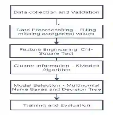 The identification of Prakriti types for the human body is a long-lost medical practice in finding the harmony between the nature of human beings and their behaviour. There are 3 fundamental Prakriti types of individuals. A person can belong to any Dosha. In the existing models, researchers have made use of SVM, KNN, PCA, Decision Tree, and various other algorithms. The output of these algorithms was quite decent, but it can be enhanced with the help of Multinomial Naive Bayes and K-modes clustering. Most of the researchers have confined themselves to 3 basic classes. This might not be accurate in the real-world scenario, where overlapping might occur. Considering these, we have classified the Doshas into 7 categories, which includes overlapping of Doshas. These are namely, VATT-Dosha, PITT-Dosha, KAPH-Dosha, VATT-PITT-Dosha, PITT-KAPH-Dosha, KAPH-VATT-Dosha, and VATT-PITT-KAPH-Dosha. The data used contains a balanced set of all individual entries on which preprocessing steps of machine learning have been performed. Chi-Square test for handling categorical data is being used for feature selection. For model fitting, the method used in this approach is K-modes clustering. The empirical results demonstrate a better result while using the MNB classifier. All key findings of this work have achieved 0.90 accuracy, 0.81 precision, 0.91 F-score, and 0.90 recall. The discussion suggests a provident analysis of the seven clusters and predicts their occurrence. The results have been consolidated to improve the Ayurvedic advancements with machine learning.