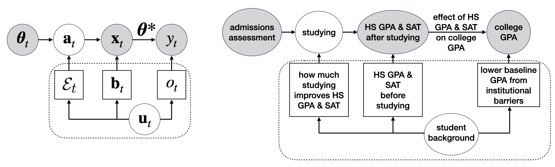 翻译:在机器学习(ML)算法自动化或告知对人作出相应决定的环境下,个别决策主体往往受到激励,从战略上修改其可观测特征,以获得更有利的预测。因此,评估规则所培训的分布可能不同于部署时所操作的分布。虽然这种分布变化一般会妨碍准确预测,但我们的工作确定了与战略反应所导致转变相关的一个独特机会:我们表明,我们可以利用战略对策有效地恢复可观测特征与结果之间的因果关系,即使存在未观测到的相混淆变量,我们也希望预测这些特征和结果。具体地说,我们的工作在ML模型的战略反应与工具变量(IV)回归之间建立了一种新的联系,通过观察所部署模型的顺序可被视为一种影响代理人的可观察特征但并不直接影响其结果的工具。我们表明,我们的因果回收方法可以用来改善以下几个重要标准的决策:个人公平性、代理人结果和预测性风险。我们特别表明,如果决策主体在修改非因果属性的能力上有所不同,任何决定性规则与因果系数的不公分化程度之间,则可以导致没有因果关系。