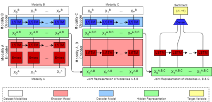 翻译:多式机器学习是一个核心研究领域,涉及语言、视觉和声学模式。多式学习的核心挑战涉及学习表现,能够处理和联系多种模式的信息。在本文件中,我们提出两种方法,即采用顺序顺序(Seq2Seq2Seq)方法,在不受监督的情况下学习联合多式表现:一种\textit{Seq2Seq2Seqmodality Transformation Production}和一种\textit{Seq2Seq2Seqmodility Transferation model}。我们还探讨这些后继模式的多式联运投入和产出的多种差异。我们利用CMU-MOSI数据集进行的多式情绪分析实验表明,我们的方法学习了信息丰富的多式联运表现,这些表现超越了基线,并在多式情绪分析上取得了更好的业绩,特别是在双式案例中,我们的模式能够将F1分数提高12分。我们还讨论了多式Seq2Seqeq方法的未来方向。