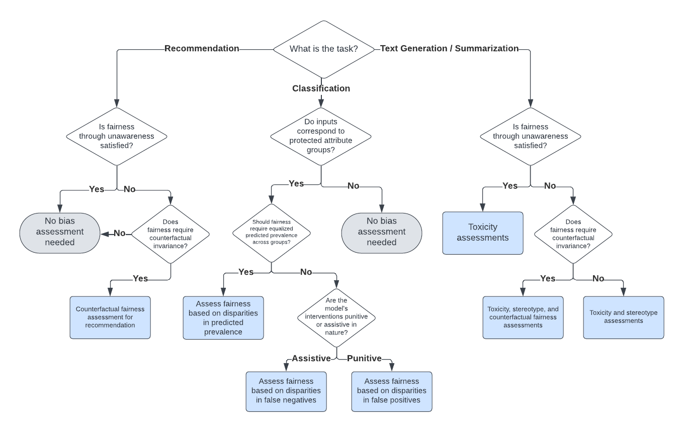 Large language models (LLMs) can exhibit bias in a variety of ways. Such biases can create or exacerbate unfair outcomes for certain groups within a protected attribute, including, but not limited to sex, race, sexual orientation, or age. This paper aims to provide a technical guide for practitioners to assess bias and fairness risks in LLM use cases. The main contribution of this work is a decision framework that allows practitioners to determine which metrics to use for a specific LLM use case. To achieve this, this study categorizes LLM bias and fairness risks, maps those risks to a taxonomy of LLM use cases, and then formally defines various metrics to assess each type of risk. As part of this work, several new bias and fairness metrics are introduced, including innovative counterfactual metrics as well as metrics based on stereotype classifiers. Instead of focusing solely on the model itself, the sensitivity of both prompt-risk and model-risk are taken into account by defining evaluations at the level of an LLM use case, characterized by a model and a population of prompts. Furthermore, because all of the evaluation metrics are calculated solely using the LLM output, the proposed framework is highly practical and easily actionable for practitioners.