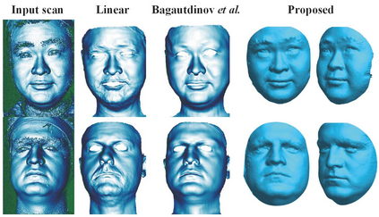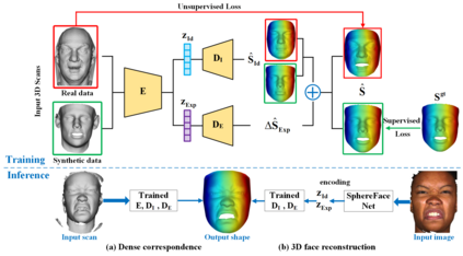 翻译:传统的三维模型从不超过300个单一数据库的培训扫描中,从不超过300个单一数据库的线性子空间中学习面部的潜在表现。从不同的三维数据库中建立大型面部模型的主要障碍在于原始扫描之间缺乏密集的通信。为解决这些问题,本文件提出一个创新框架,共同从多样化的一组原始三维扫描数据库中学习非线性面部模型,并在扫描中建立密集的点对点通信。具体地说,通过将输入的原始扫描作为无组织点云处理,我们探索使用点网结构将点云转换为身份和表达特征显示,使解码网络从中恢复其三维面形。此外,我们提议了一种不要求扫描需要通信标签的薄弱监督学习方法。我们展示了我们拟议方法在形状和表达上的高度密集通信和代表力,及其对单一图像3D面重建的贡献。