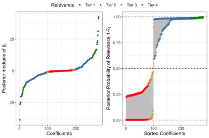 翻译:通过变量选择寻找相似的模型是统计推断的许多领域的一个根本问题。 在这里, 我们侧重于贝叶西亚回归模型, 通过对回归系数的分布进行常规化, 可以通过对回归系数的分布进行变量选择。 在巴伊西亚文献中, 用于实现这一目标的有两大类前科: 悬浮和悬浮, 以及高斯人的连续比例混合。 前者是两种分布的分解混合, 其特点是低差异和高度差异。 在后者中, 一个连续的先导是零平均值的高斯分布尺度。 与这些现有方法不同, 我们提出一个新的前导类别, 以连续比例混合物混合物的离散混合物组合为基础, 为巴伊西亚变量的选择提供一个更一般的框架。 为此, 我们用混合成分组合和连续混合物的局部缩放参数替代了特定的观测本地缩放参数( 典型的混合物) 。 我们的方法极大地减少了所需参数的数量, 并允许在各种系数之间共享信息, 改进了缩放效果。 通过使用半敏感度分布, 这种方法导致一种新的前期模型, 我们用当前对马质的模型进行分组和多级模型的预估测算。
