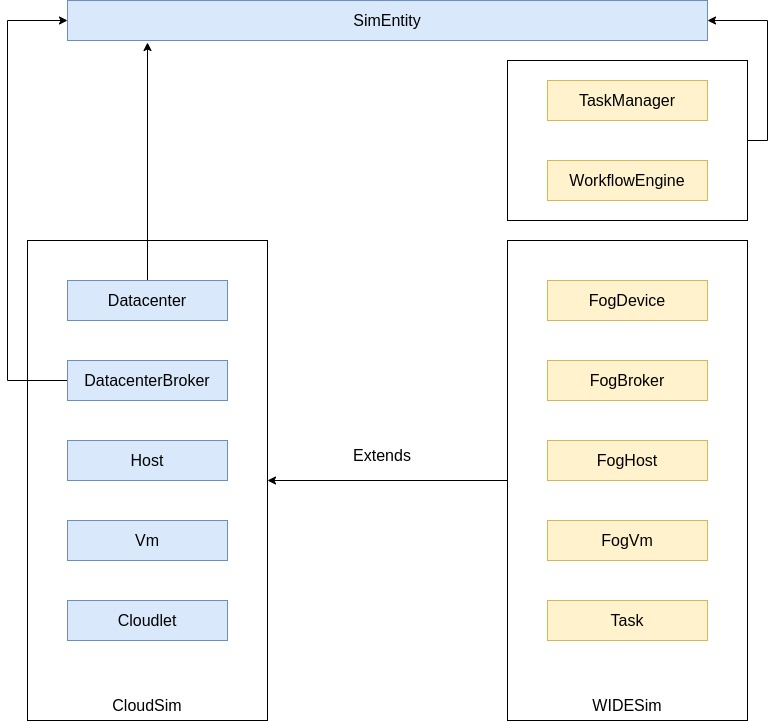 This paper presents a toolkit for simulating resource management of scientific workflows in distributed environments with graph topology called WIDESim. WIDESim can work with all three different structures of scientific workflows: single, multiple workflows, and workflow ensembles. Also, unlike most existing network simulators, there is no constraint on the topology of the distributed environment. We have analyzed the performance of WIDESim in comparison to standard simulators and workflow management tools. The comparison indicates that WIDESim's performance is close to existing standard simulators besides its improvements