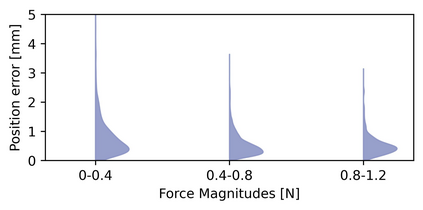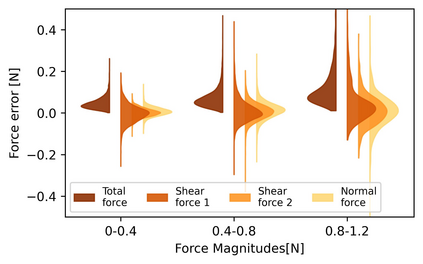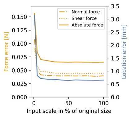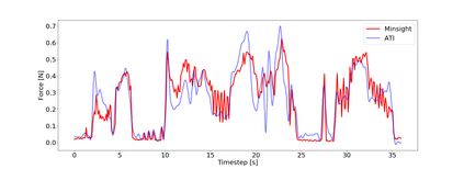 翻译:智能与物理世界的交互需要超越视听的知觉能力;充满活力的触觉感应对于自主机器人巧妙地操纵陌生对象或安全地接触人类至关重要。因此,机器人操纵装置需要高分辨率的接触传感器,而这些传感器要求体积小,坚固,价格便宜,且具有高效性。本文介绍的软视觉型触觉传感器是先前发表的 Insight 传感器的迷你版和优化版。Minsight 的尺寸和形状与人类指尖相同,使用机器学习方法,以 60 Hz 的频率输出高分辨率的 3D 接触力向量图。实验证实了它的出色感知性能,在其表面积上具有 0.07 N 的平均绝对力误差和 0.6 mm 的接触位置误差。Minsight 的实用性在一个 3-DoF 机械臂上的两个机器人任务中得到展示。首先,闭环力控制使机器人能够仅基于触觉数据跟踪人类的手指运动。其次,通过检测软弹性体内的硬隆起粒子在具有 98% 的准确性的情况下证明了传感器输出的信息价值。这些研究结果表明 Minsight 可以让机器人具有巧妙操纵和物理人机交互所需的详细指尖触觉感知能力。